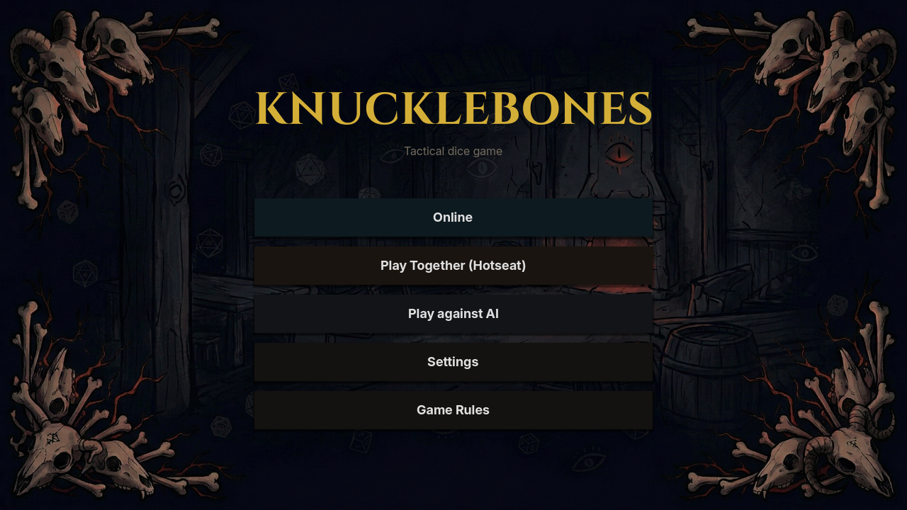 Knucklebones is a standalone fan recreation of the iconic dice mini-game from Cult of the Lamb (2022, Massive Monster). All credit for the original game design goes to Massive Monster and Devolver Digital.